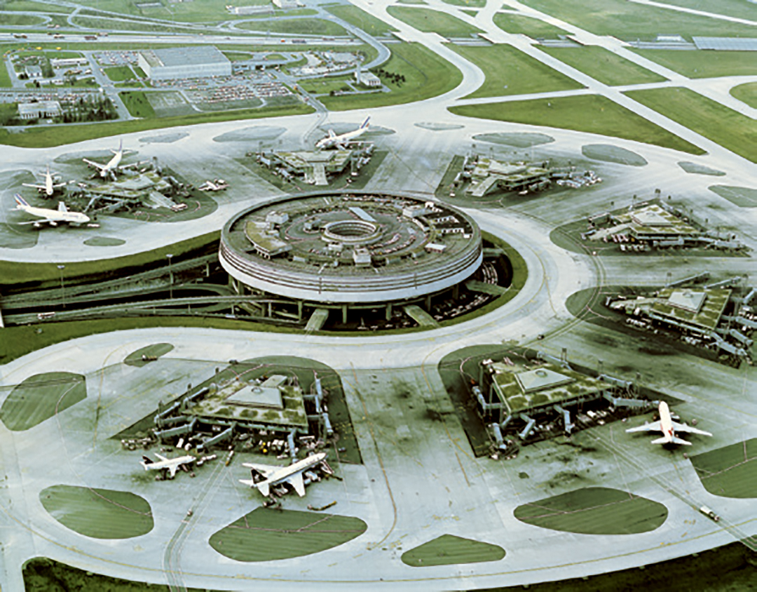 Paul Andreu為戴高樂機場設計的7座航站中,令人印象最深刻也最具代表性的就是巴黎戴高樂機場第一航站,航站主體是一棟10 層樓的圓形大樓,周邊環繞著7座梯形衛星登機門,每座衛星建築設計6個登機門,航站主體和衛星建築間,則是透過穿越停機坪地底的電扶梯連結。