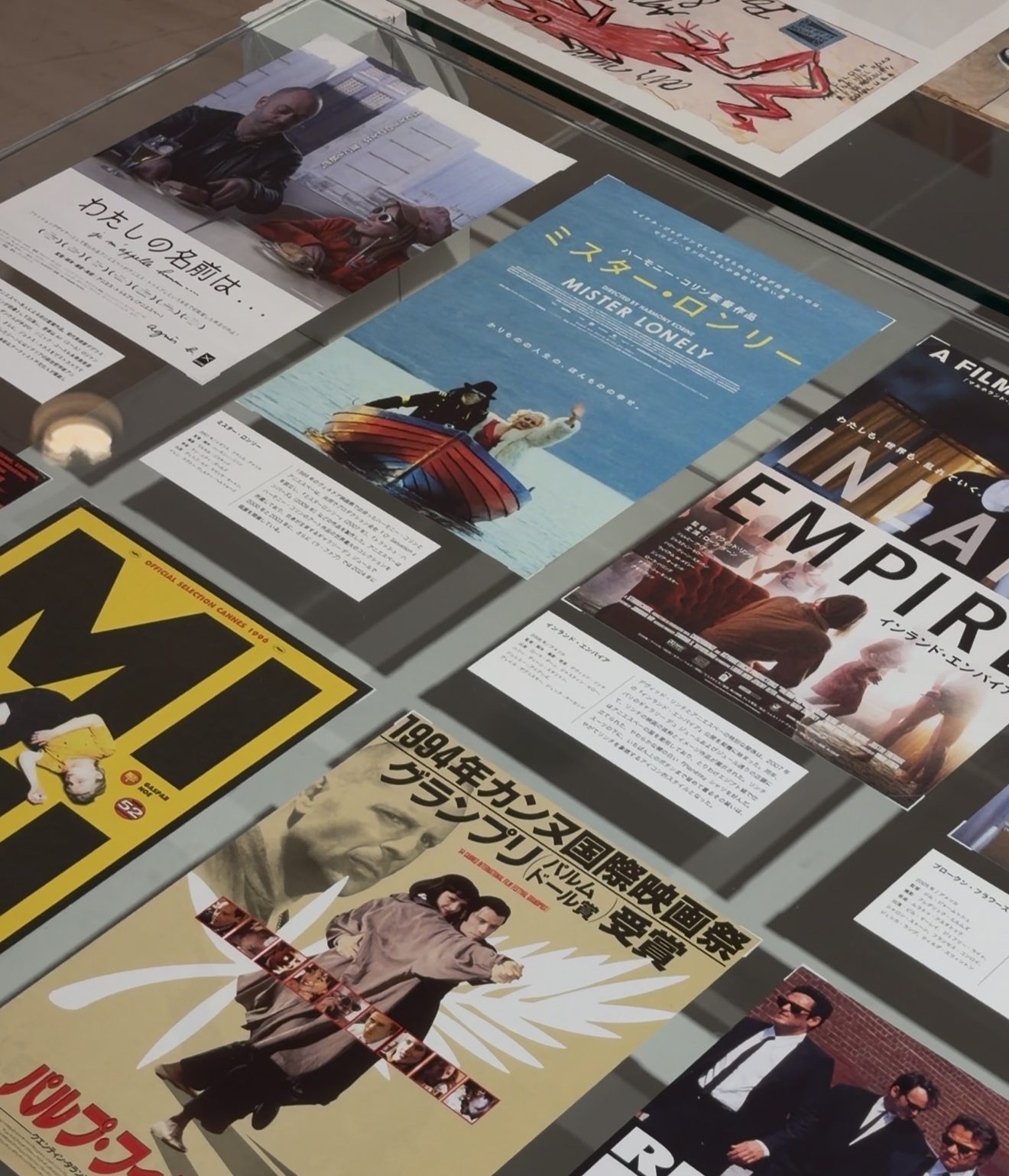 在展覽的另一角,我們也回顧了agnès b.與電影文化長久以來的連結。自成立以來,電影便是agnès b.基因裡的一部分。從 agnès b. 位於巴黎 Rue du Jour 的第一間店開始,年輕的 Agnès 女士便喜歡在店裡貼上她喜歡的電影海報,而這個傳統也蔓延到全世界 agnès b. 店舖中,直到今天。她的服裝多次成為電影畫面裡的一部分,而她甚至也曾親自執導過電影⋯「J’aime le cinema!(我愛電影!)」並不只是一句口號,而是 agnès b. 與生俱來的基因。
