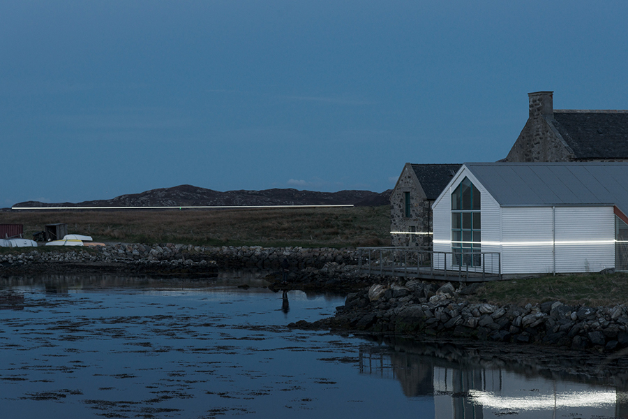 劃線在北緯57度西經7度 切斷大地與海洋的警告光束