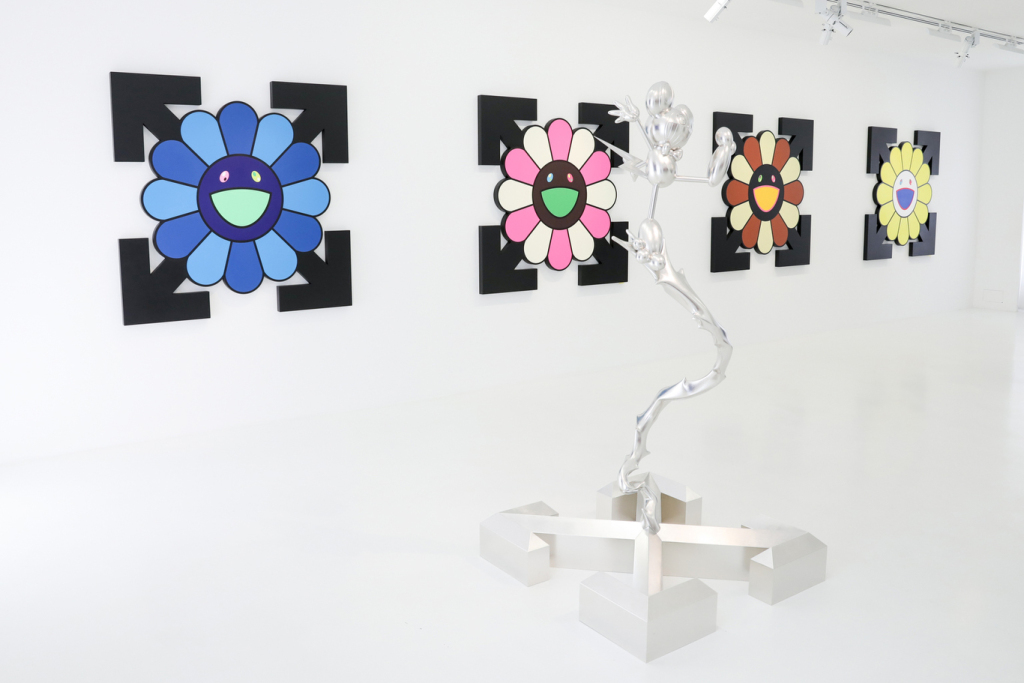 四個對角箭頭框著微笑花兒 Virgil Abloh與村上隆二度合作