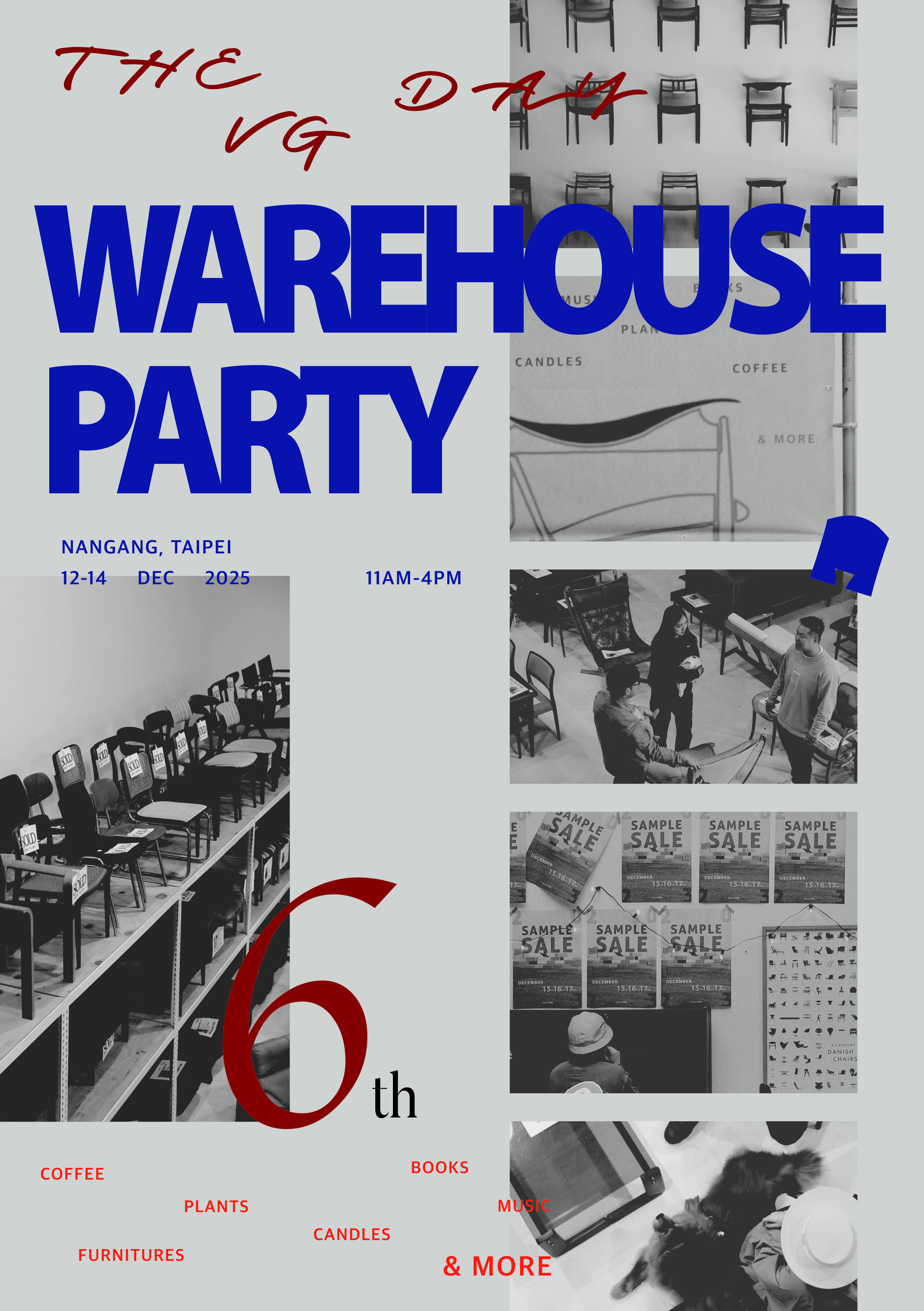 座落於民生社區,由Eric與Cyndi創立的北歐經典傢俱品牌THE VG HOUSE,自去年起將每年舉辦南港倉庫開倉Sample Sale的日子,重新定調為透過傢俱去連結生活一切可能性,相約新舊朋友上山尋寶舉辦派對的日子 —— 《The VG Day – Warehouse Party》集結DJ現場音樂、生活道具、植栽、咖啡與香氛品牌,而「Warehouse Party」一詞,則回應了最初源自美國地下電子音樂文化的自由精神:1970至80年代的Chicago Warehouse是早期House音樂誕生、跳動與蔓延的起點,以此為靈感,THE VG HOUSE把北歐愛物惜物、將傢俱老件視為傳家寶的生活哲學,以及團隊前往丹麥尋寶的驚喜帶回台灣,讓傢俱不只是被購買收藏,而是等待被探索、被感受,喚起生活與品味感知的載體。
